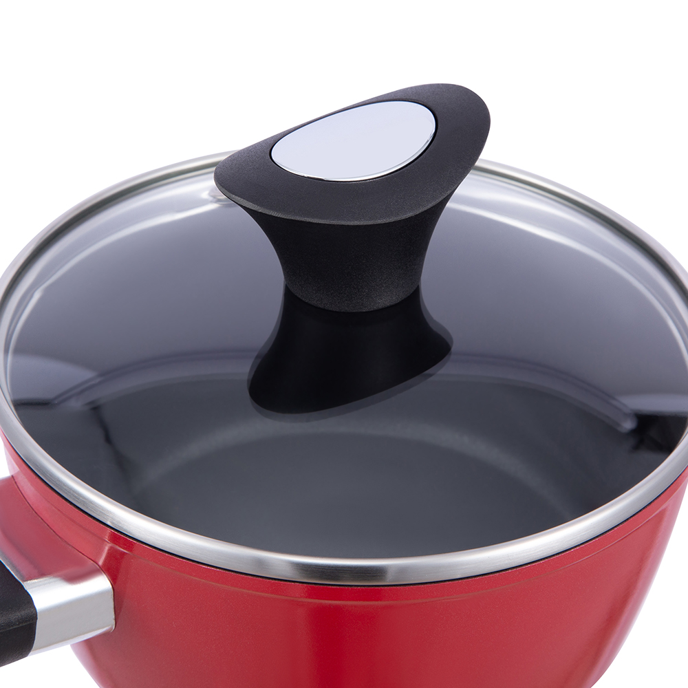 Cu o cratiță din aluminiu JYCookware seria de 16 cm, 2 L din aluminiu cu bază cu trei straturi și capac din sticlă securizată, preparatele tale vor fi și mai delicioase!