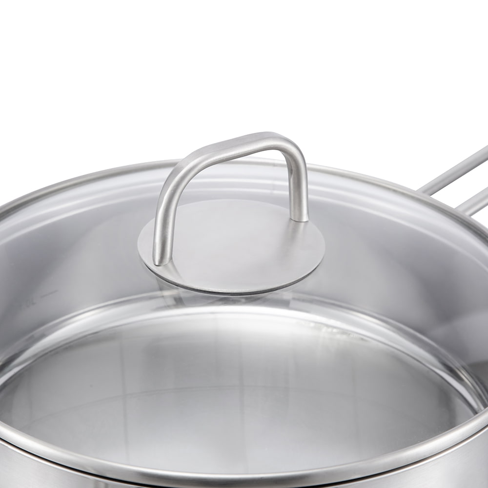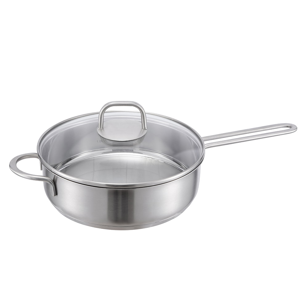 ACASĂ / PRODUS / TIGAIE / Tigaie din oțel inoxidabil SUS304 / 24*7CM Mâner lateral și tigaie cu mâner lung, cu capac de sticlă JY-2407NP