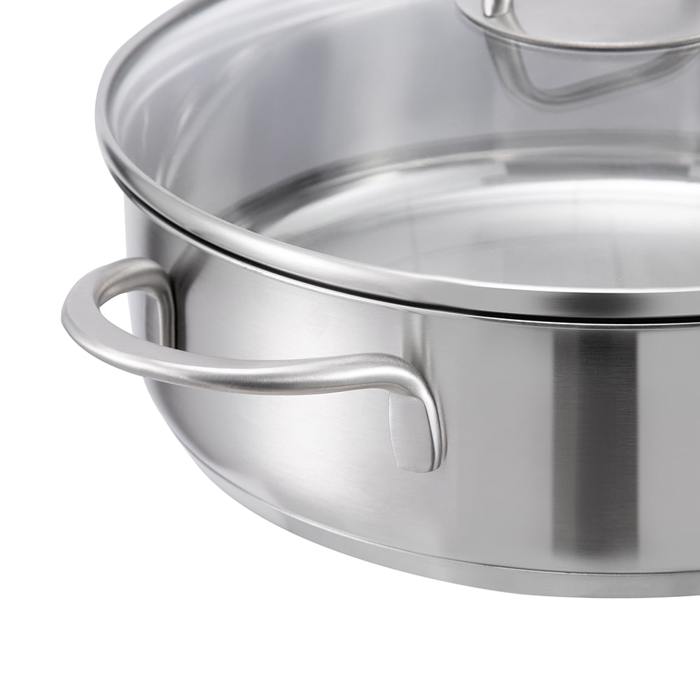 Descriere produs: tigaie din oțel inoxidabil cu capac de sticlă