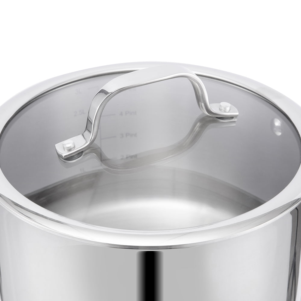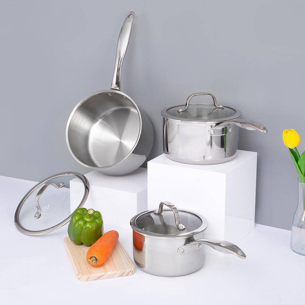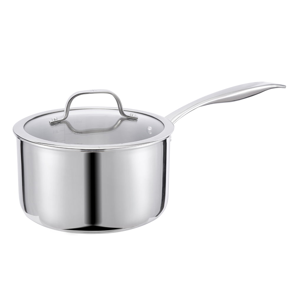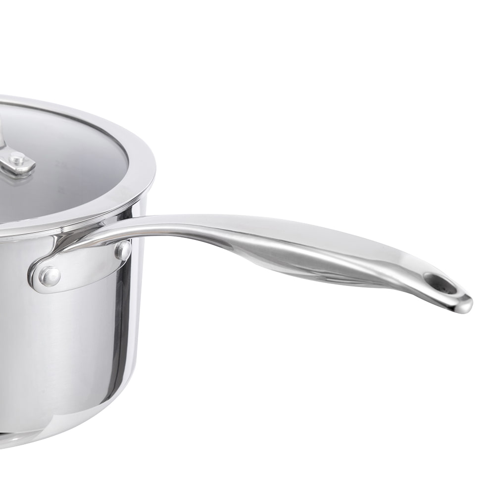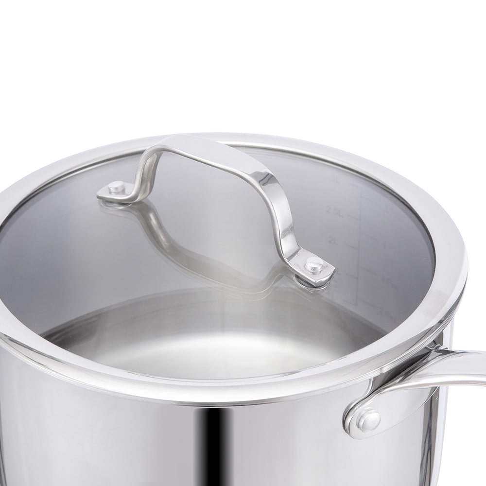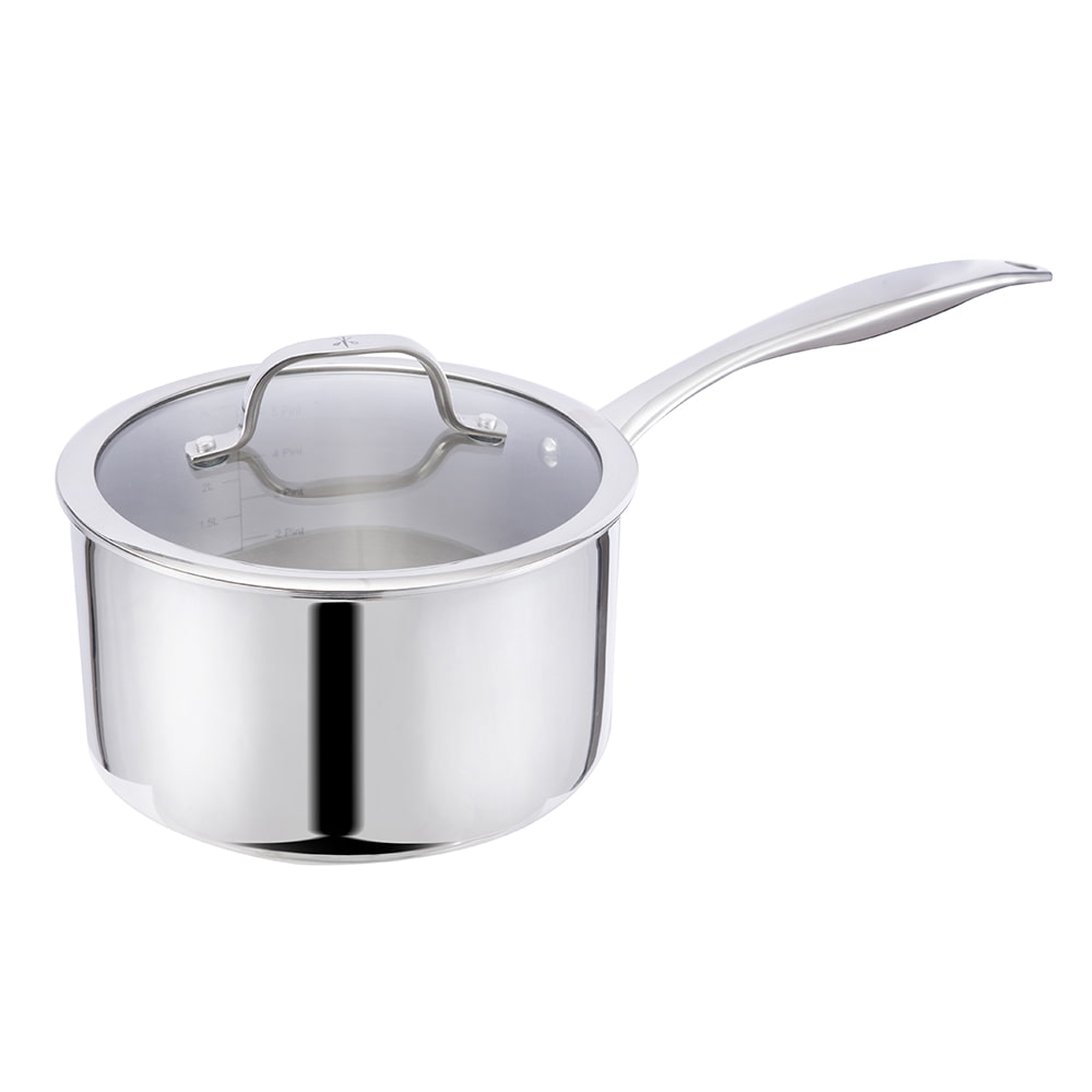 Cu o cratiță din oțel inoxidabil de 18 cm JY, seria SN de gătit 3,5 L, cu bază cu trei straturi și capac din sticlă securizată, preparatele tale vor fi și mai delicioase!