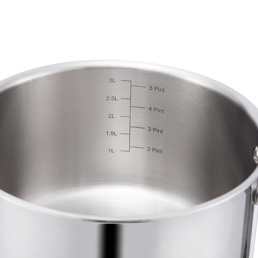 Este realizat din oțel inoxidabil cu tehnologie modernă de bază cu trei straturi (oțel inoxidabil aluminiu oțel inoxidabil), care distribuie uniform căldura, asigurând o gătire mai rapidă și menținând mâncarea caldă mai mult timp. Are un diametru de 18 cm, o dimensiune excelentă pentru diverse sarcini de bucătărie.