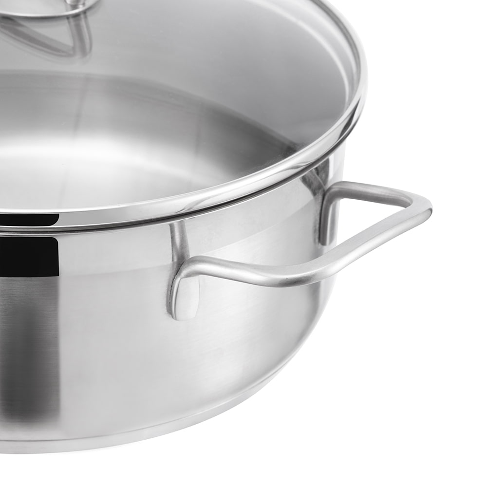 Economisește timp și energie: secretul este fundul cu trei straturi (oțel inoxidabil aluminiu oțel inoxidabil), care distribuie căldura uniform pentru gătit mai rapid. Acesta este motivul pentru care puteți menține căldura scăzută în timp ce gătiți, ceea ce economisește energie.