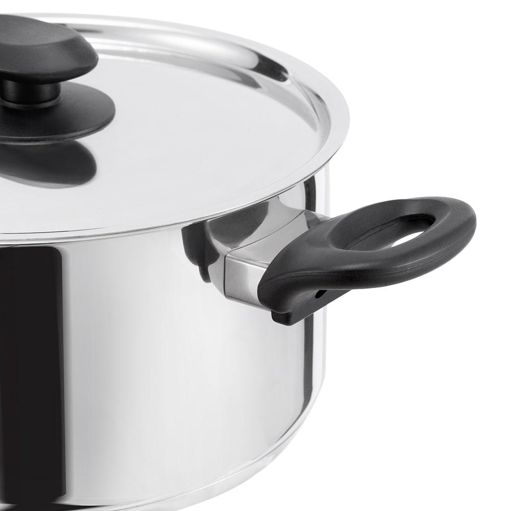 Corpul nereactiv din oțel inoxidabil asigură că acest vas este ușor de curățat după fiecare utilizare. Nu se va decolora în timp, făcându-l o investiție solidă și un plus de încredere pentru bucătăria ta.